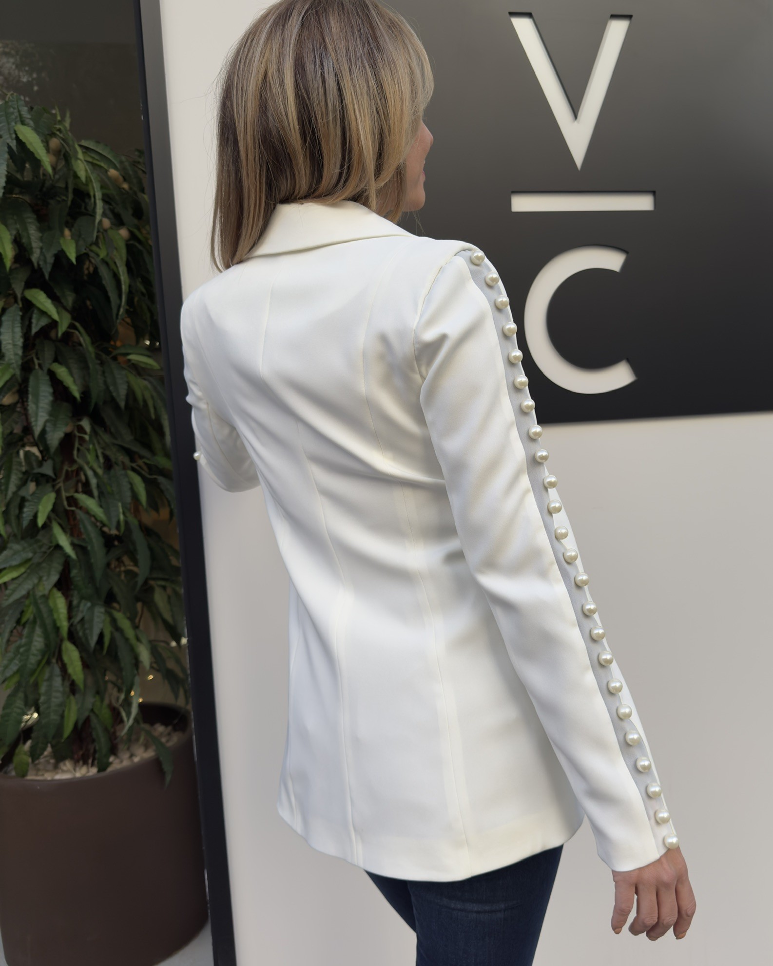 Chaqueta blanca perlas manga