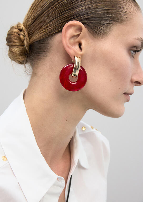 Pendiente combinado discos acrilicos rojo-metal
