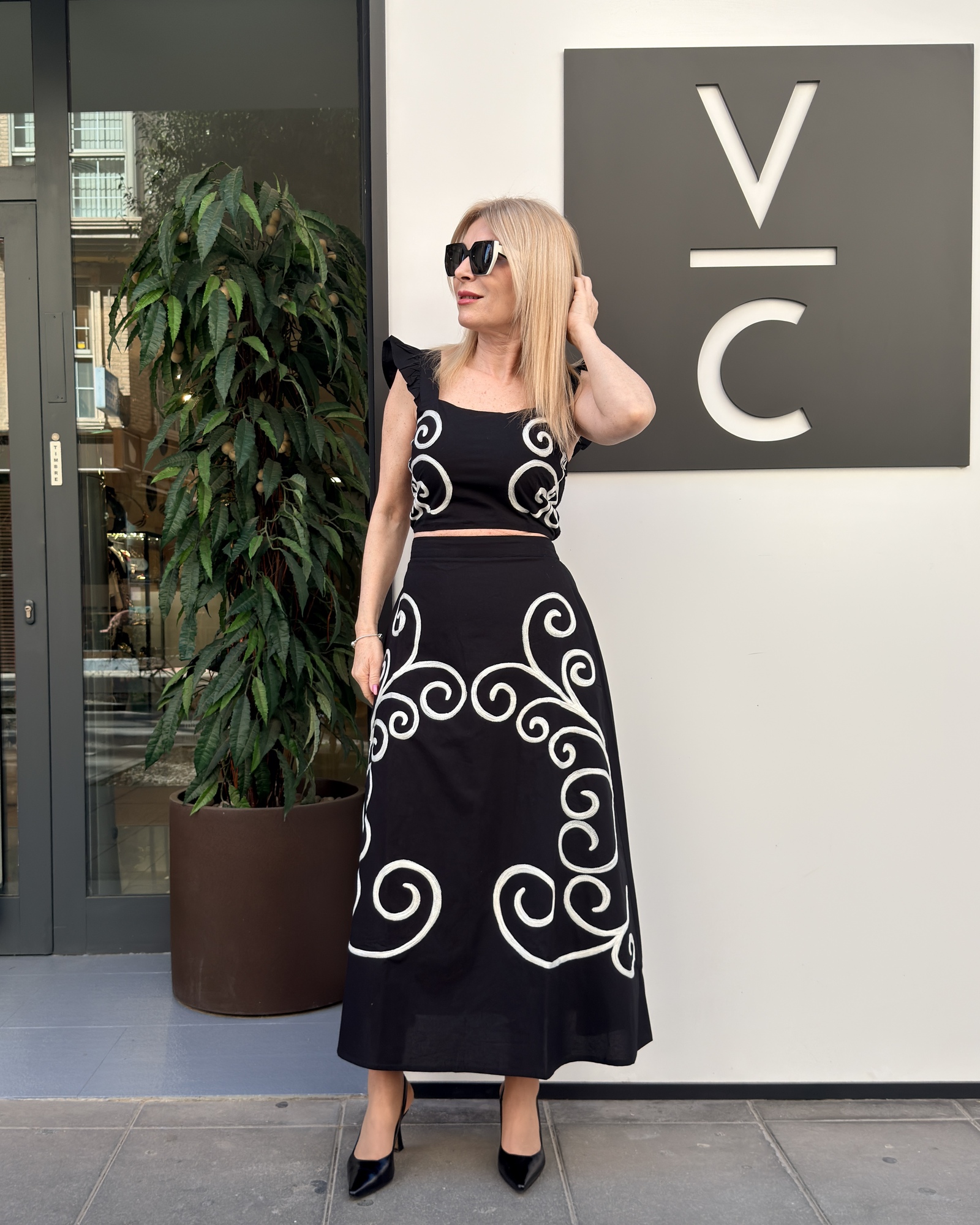 Conjunto top y falda blanco-camel