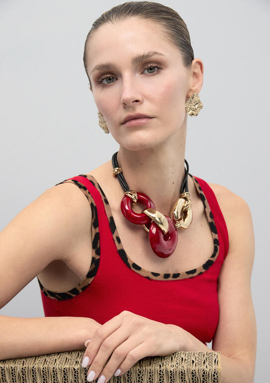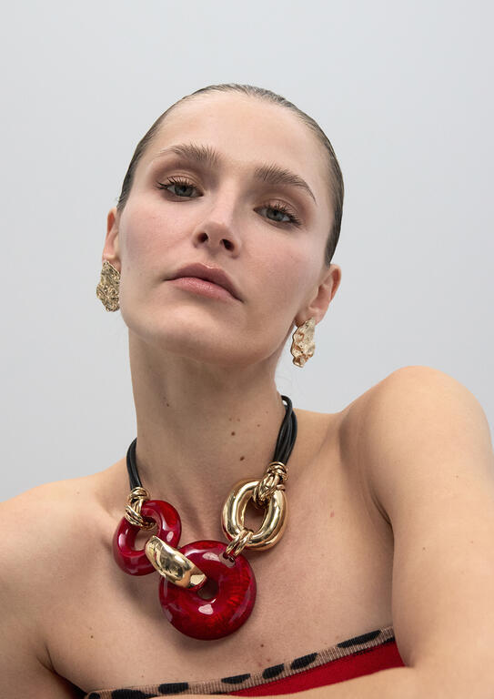 Collar corto discos acrilicos rojo-metal