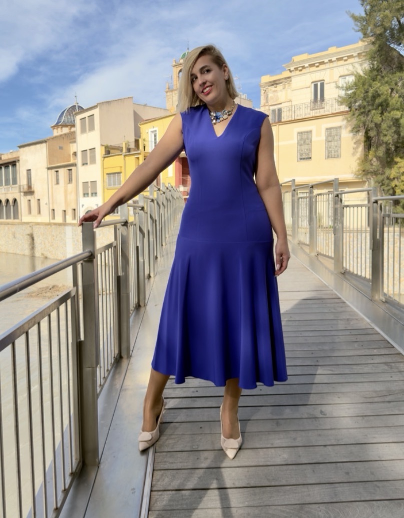 Vestido midi corte cadera azul klein