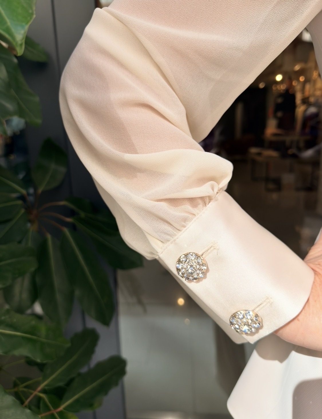 Traje beig boton joya